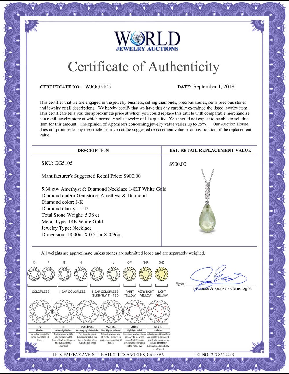 Genuine 14K White Gold 5.38 ctw Amethyst & Diamond Necklace