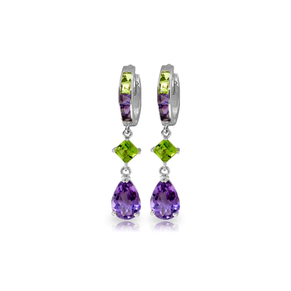 Genuine 14K White Gold 5.38 ctw Peridot & Amethyst Earrings