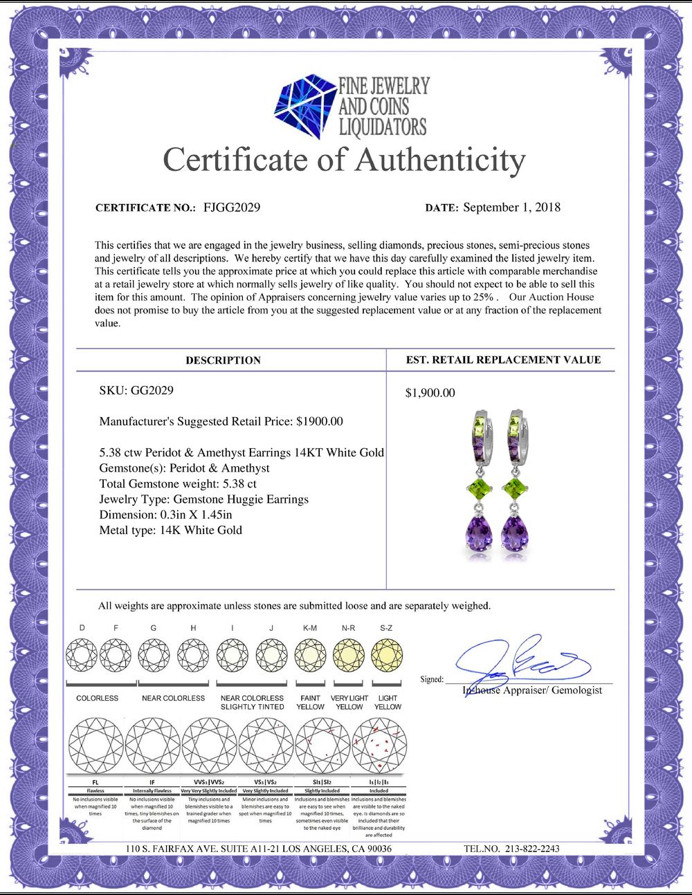 REF-62Y7F - SKU: GG2029 ---- Genuine 5.38 ctw Peridot & Amethyst Earrings 14KT White Gold
