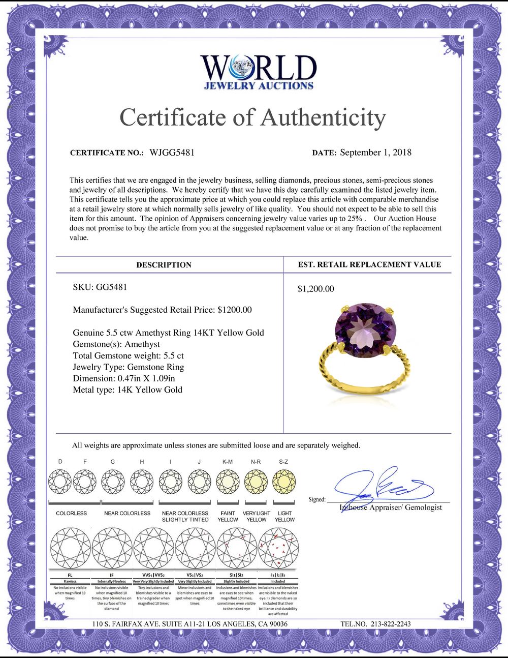 REF-37Y2F - SKU: GG5481 ---- Genuine 5.5 ctw Amethyst Ring 14KT Yellow Gold
