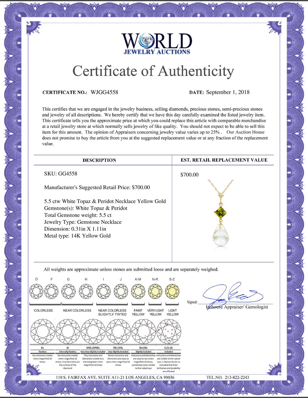 REF-22Z2N - SKU: GG4558 ---- Genuine 5.5 ctw White Topaz & Peridot Necklace 14KT Yellow Gold