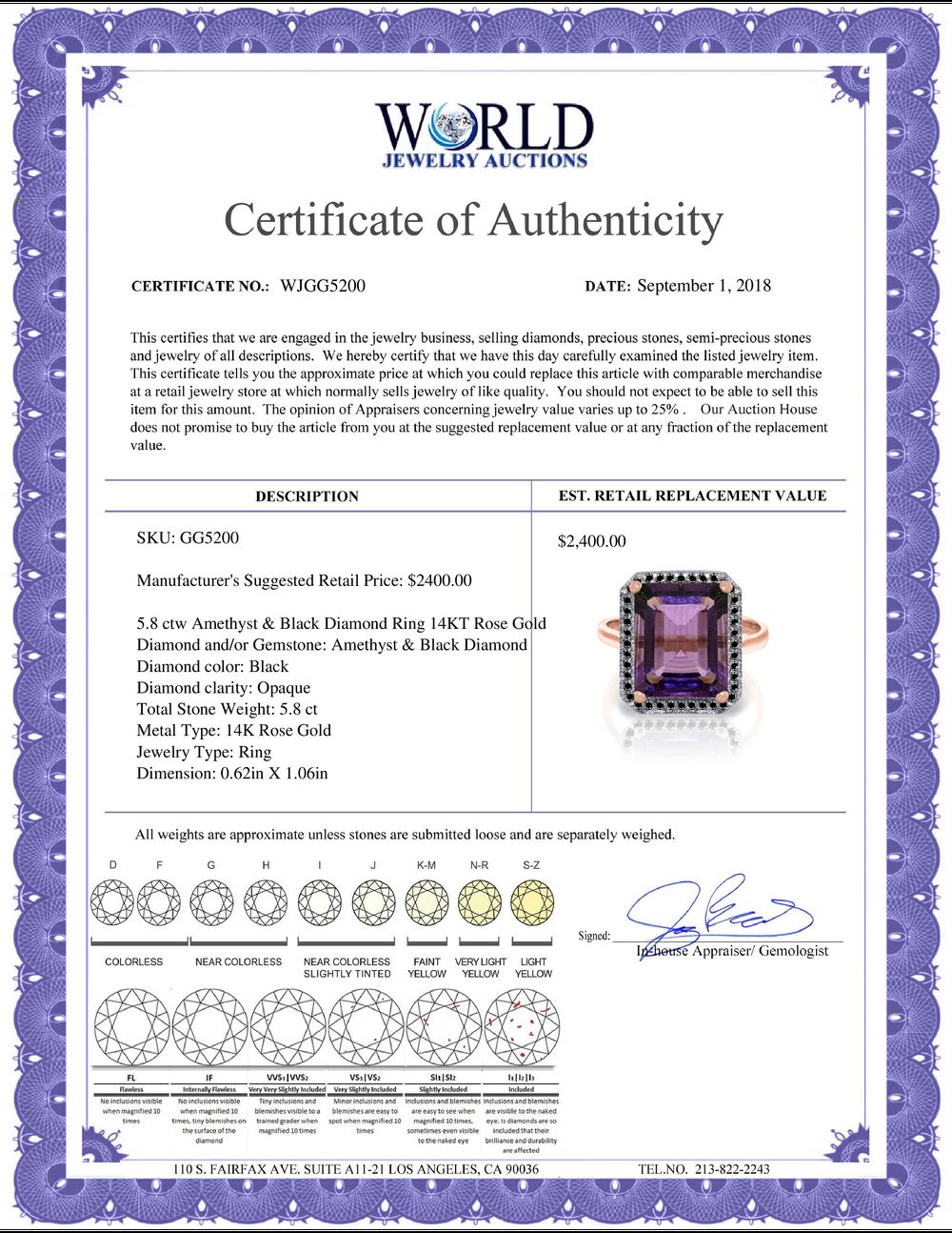 REF-79A8K - SKU: GG5200 ---- Genuine 5.8 ctw Amethyst & Black Diamond Ring 14KT Rose Gold