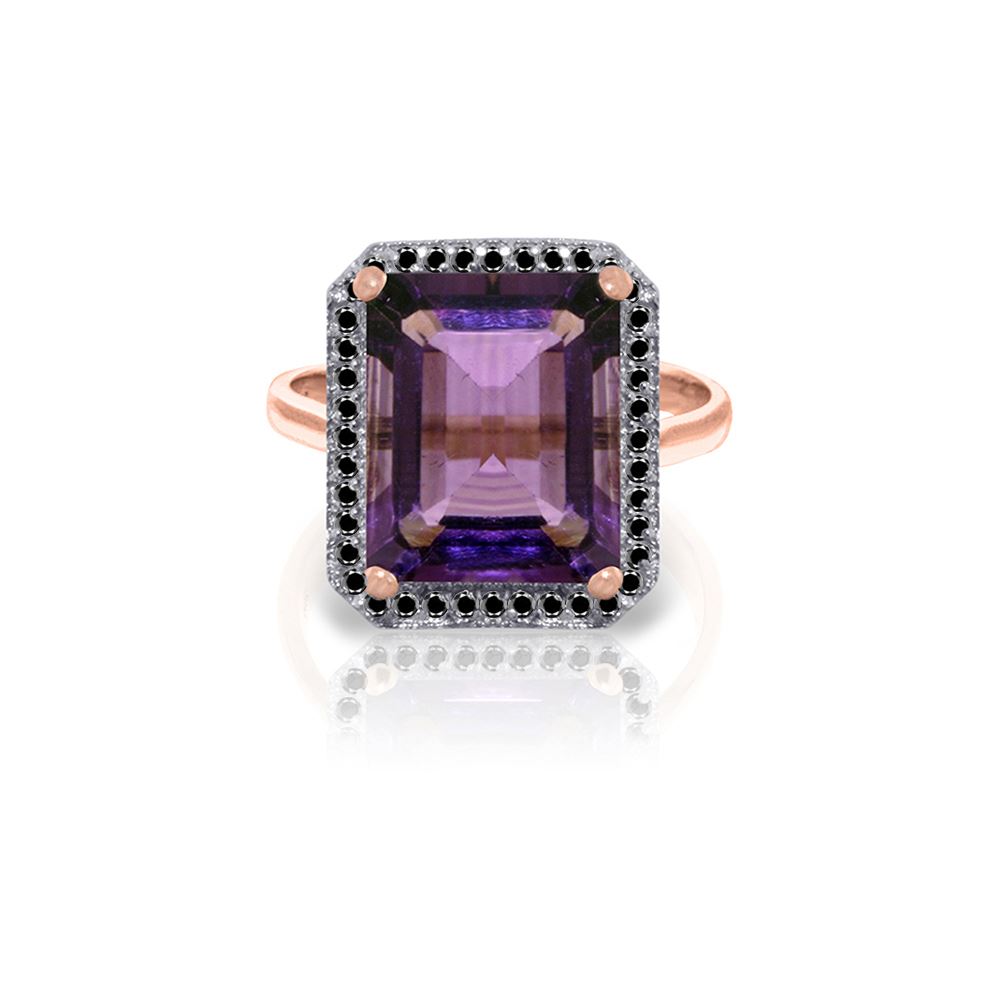 Genuine 14K Rose Gold 5.8 ctw Amethyst & Black Diamond Ring