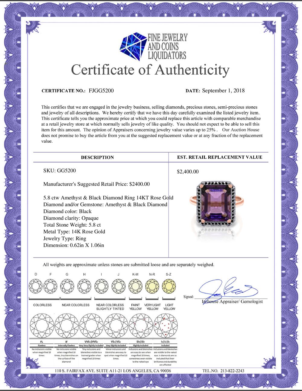 All Gia and EGL Diamonds are subject to availability due to consignors’ terms with us.