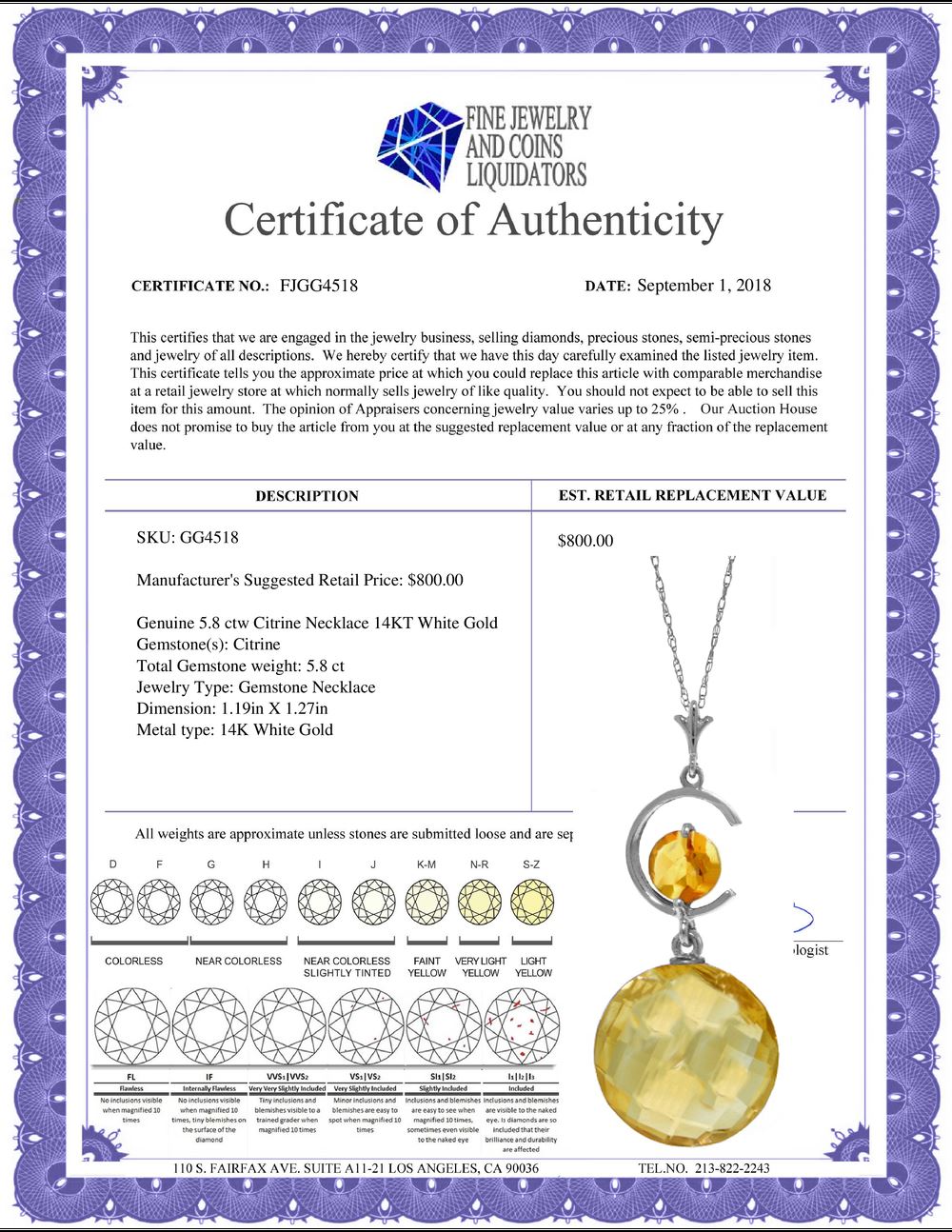REF-25F9Z - SKU: GG4518 ---- Genuine 5.8 ctw Citrine Necklace 14KT White Gold
