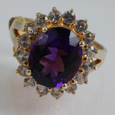 Main Stone: Amethyst ; Carat Weight: 5.85ctw ; Gold Carat:14KT; Metal: Yellow Gold ; Ring Size: 7 ; Diamond Count: 17RDWSAP ; Diamond Weight: 1.31 ; Gemstone Carat Weight: 4.54; Cut: OVAL