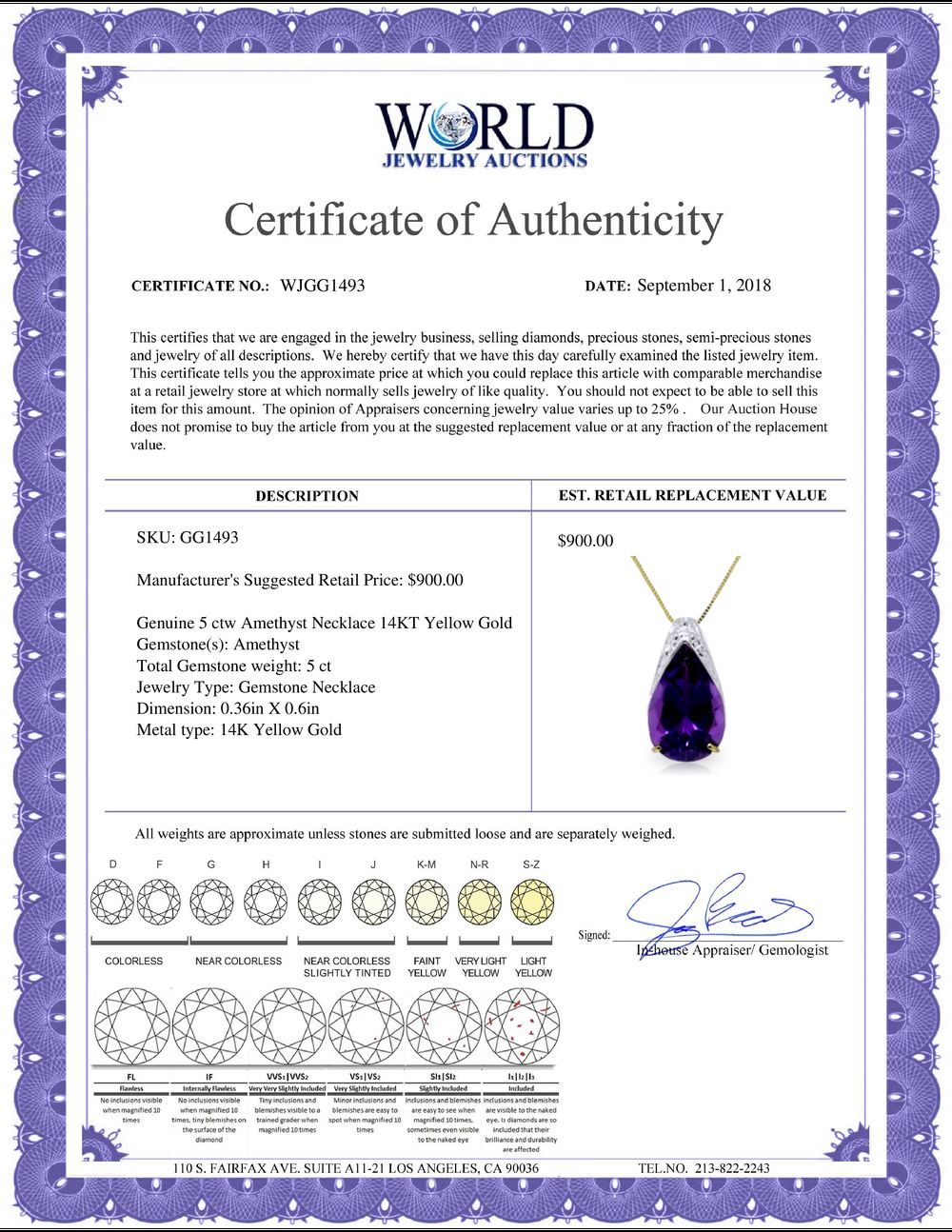 REF-27T2A - SKU: GG1493 ---- Genuine 5 ctw Amethyst Necklace 14KT Yellow Gold