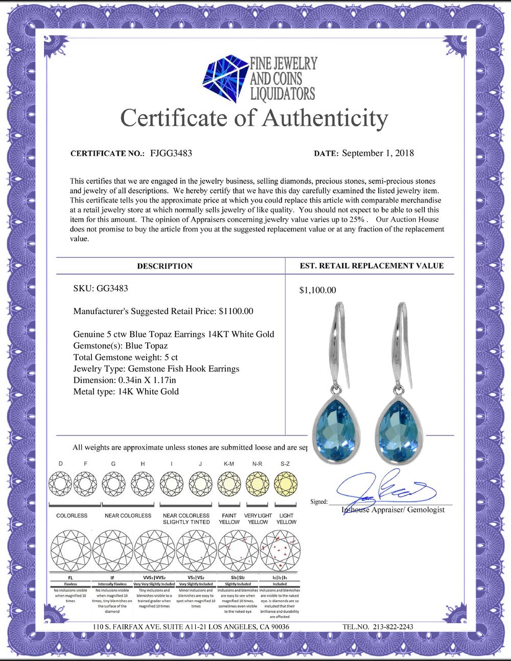 REF-35N2R - SKU: GG3483 ---- Genuine 5 ctw Blue Topaz Earrings 14KT Rose Gold