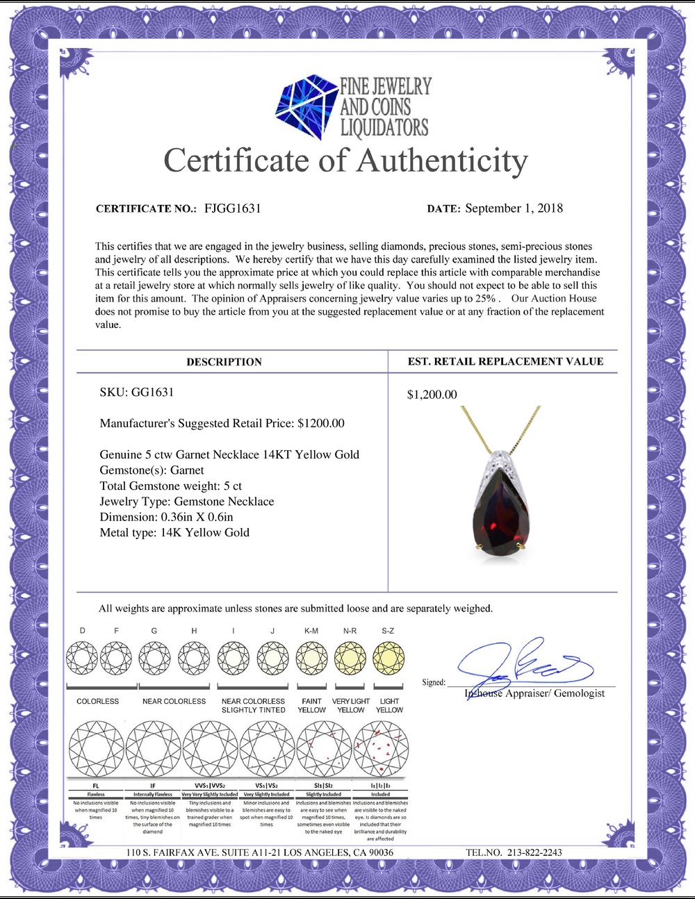 REF-37W4Y - SKU: GG1631 ---- Genuine 5 ctw Garnet Necklace 14KT Yellow Gold