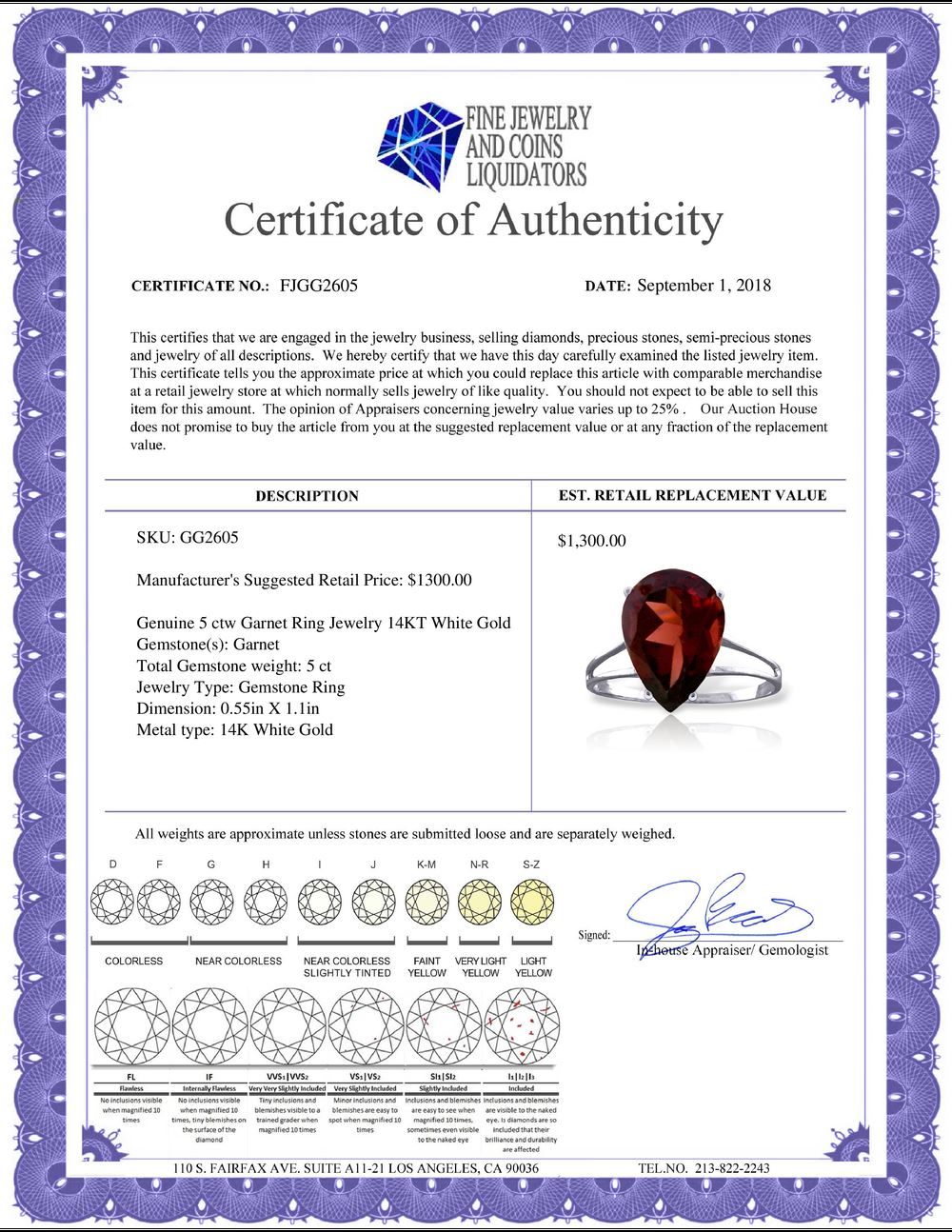 All Gia and EGL Diamonds are subject to availability due to consignors’ terms with us.