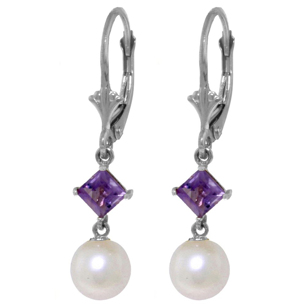 Genuine 14K White Gold 5 ctw Pearl & Amethyst Earrings