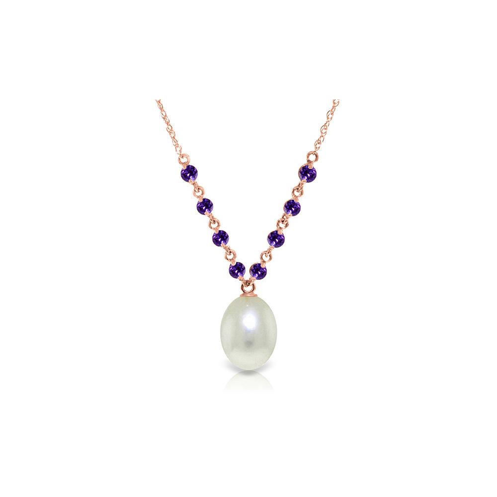 Genuine 14K Rose Gold 5 ctw Pearl & Amethyst Necklace