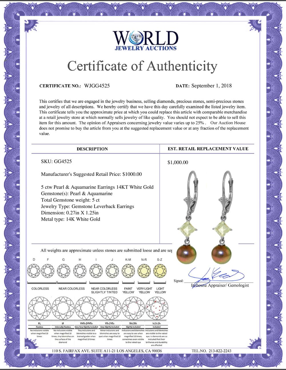 REF-32R2P - SKU: GG4525 ---- Genuine 5 ctw Pearl & Aquamarine Earrings 14KT White Gold