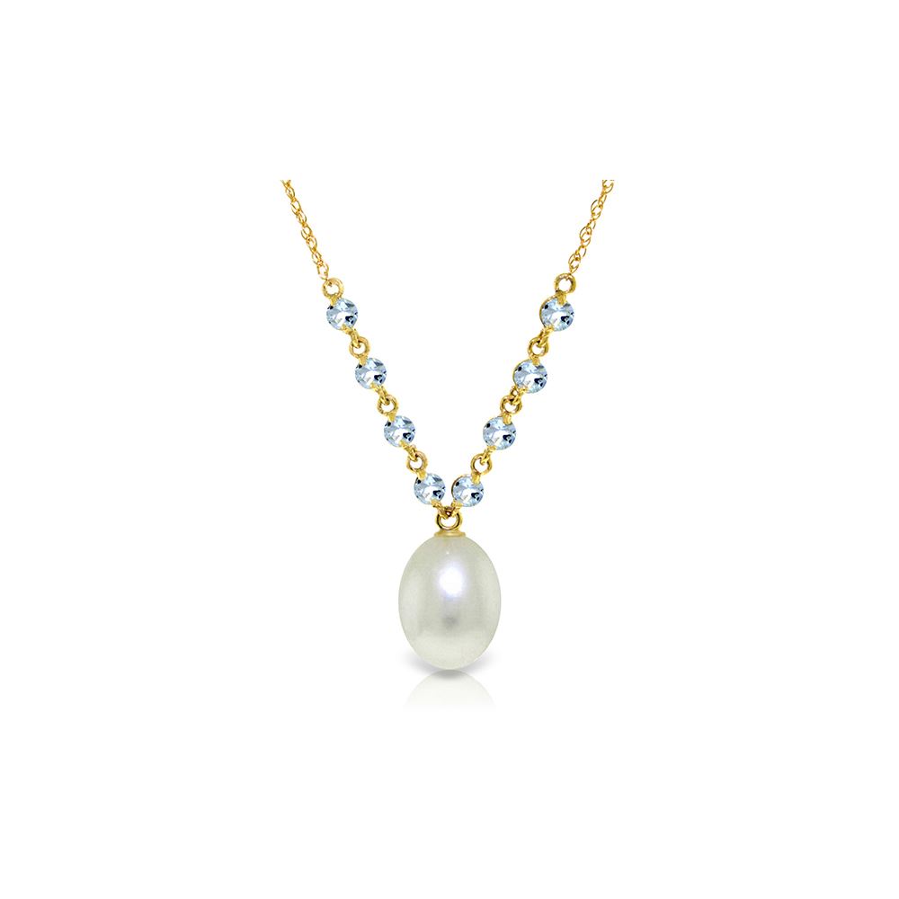 Genuine 14K Yellow Gold 5 ctw Pearl & Aquamarine Necklace