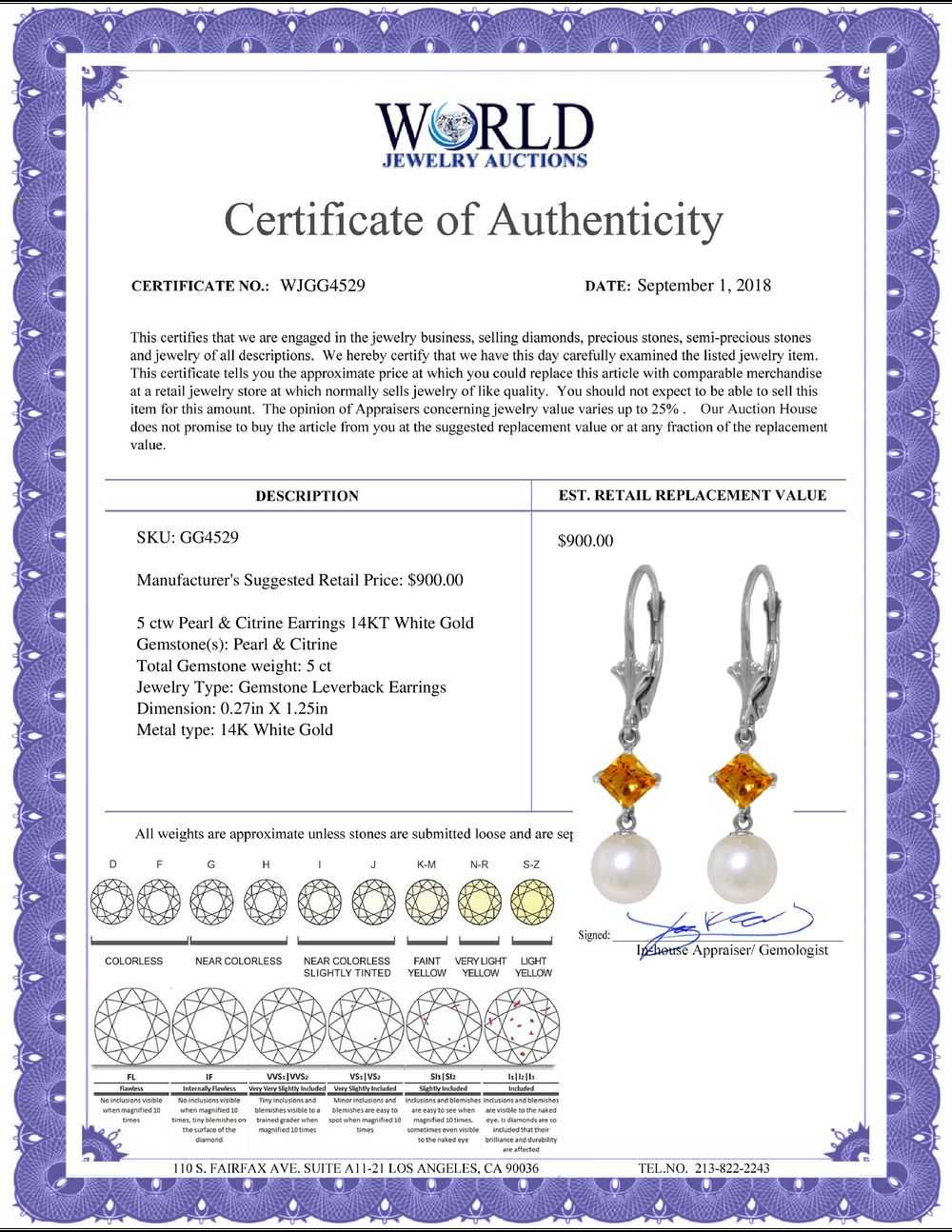 REF-29A7K - SKU: GG4529 ---- Genuine 5 ctw Pearl & Citrine Earrings 14KT Rose Gold