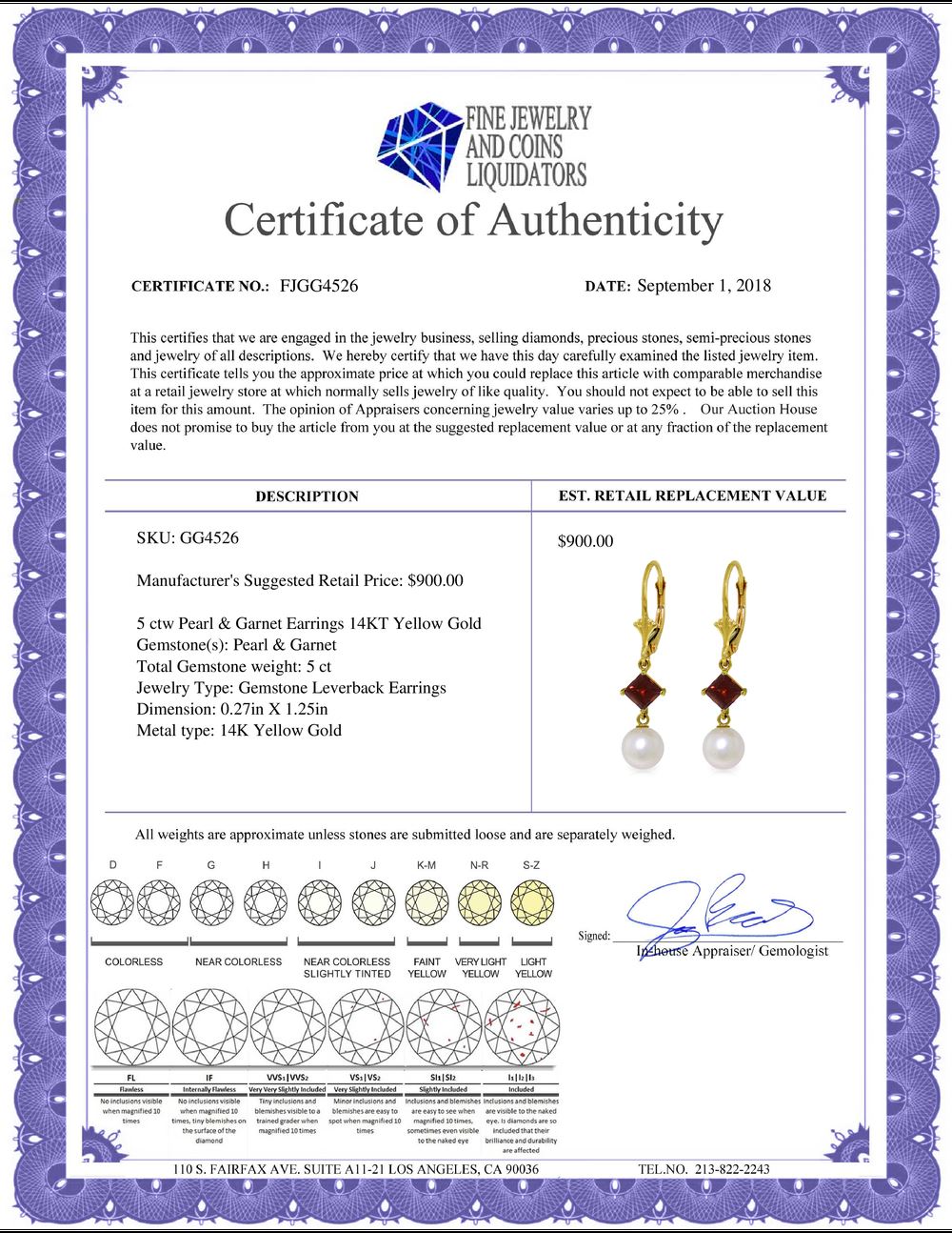 Genuine 14K Yellow Gold 5 ctw Pearl & Garnet Earrings