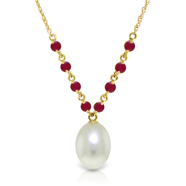 REF-28H4X ---- SKU:GG-3330 ---- Manufacturer's Suggested Retail Price: $900.00 ---- Genuine 14K Yellow Gold 5 ctw Pearl & Ruby Necklace