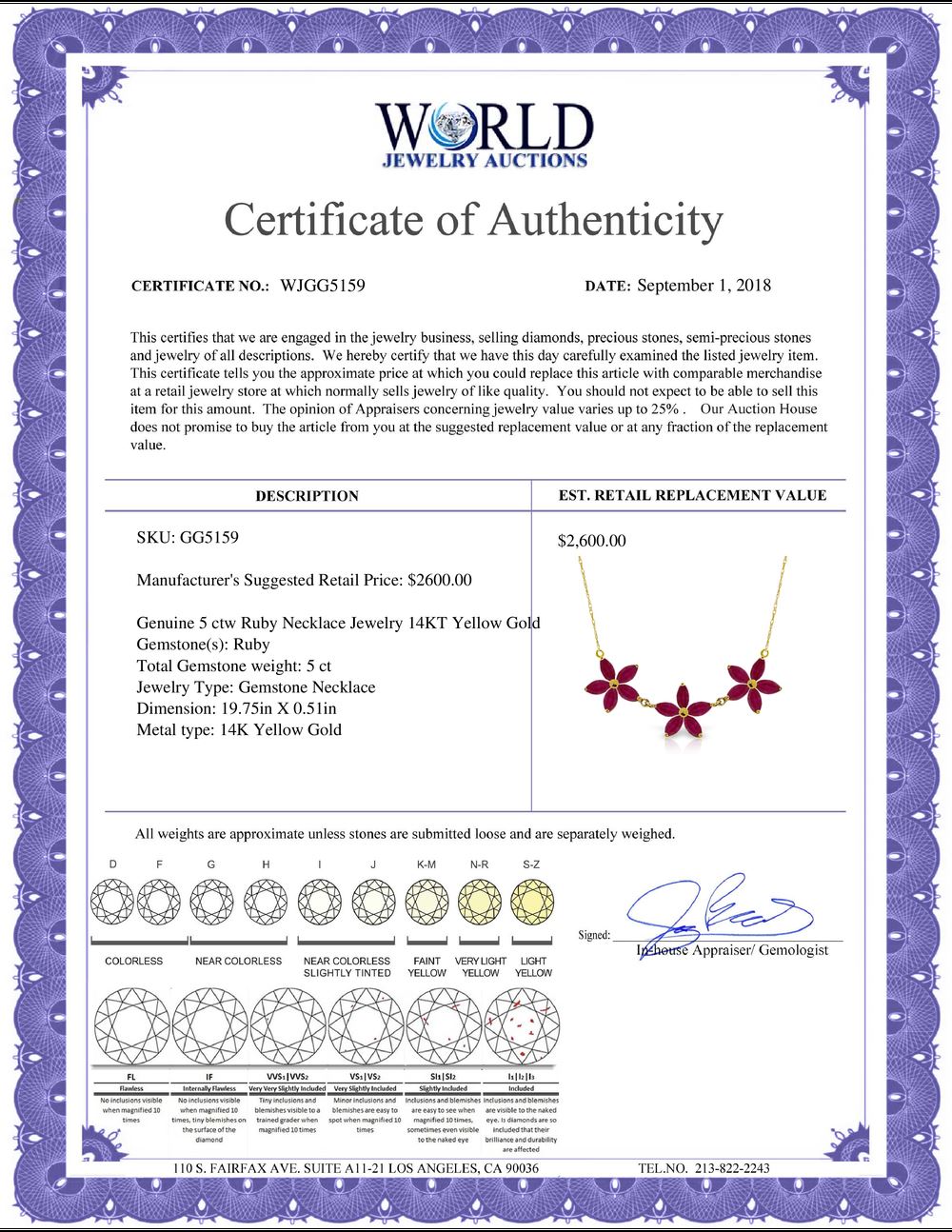 REF-86M3T - SKU: GG5159 ---- Genuine 5 ctw Ruby Necklace 14KT Yellow Gold