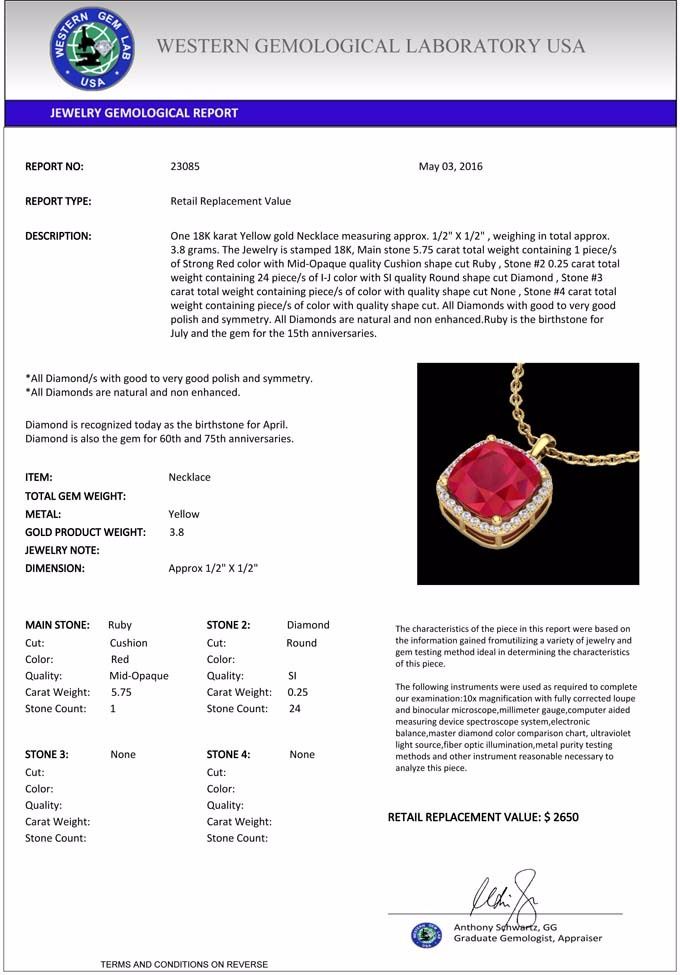 total approx. 3.8 grams. The Jewelry is stamped 18K, Main stone 5.75 carat total weight containing 1 piece/s of Strong Red color with