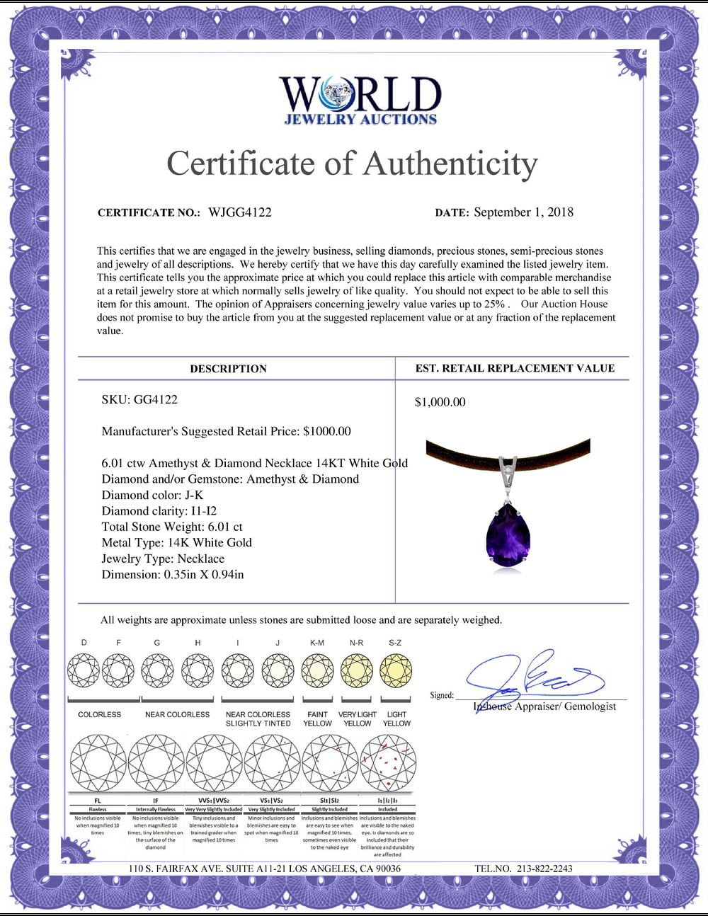 REF-32X3M - SKU: GG4122 ---- Genuine 6.01 ctw Amethyst & Diamond Necklace 14KT White Gold
