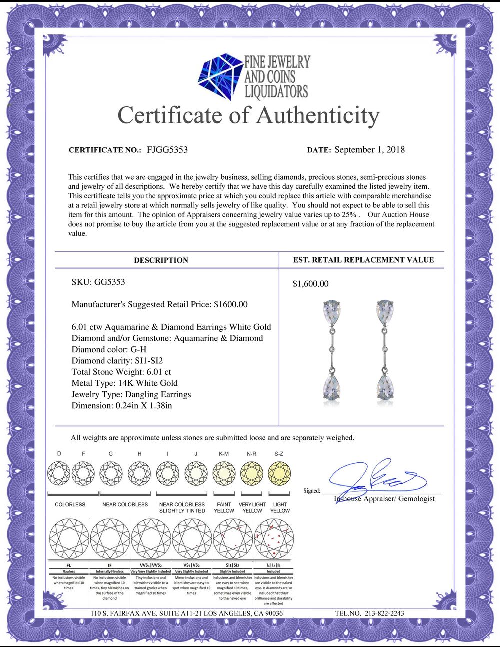 REF-50W2Y - SKU: GG5353 ---- Genuine 6.01 ctw Aquamarine & Diamond Earrings 14KT Rose Gold