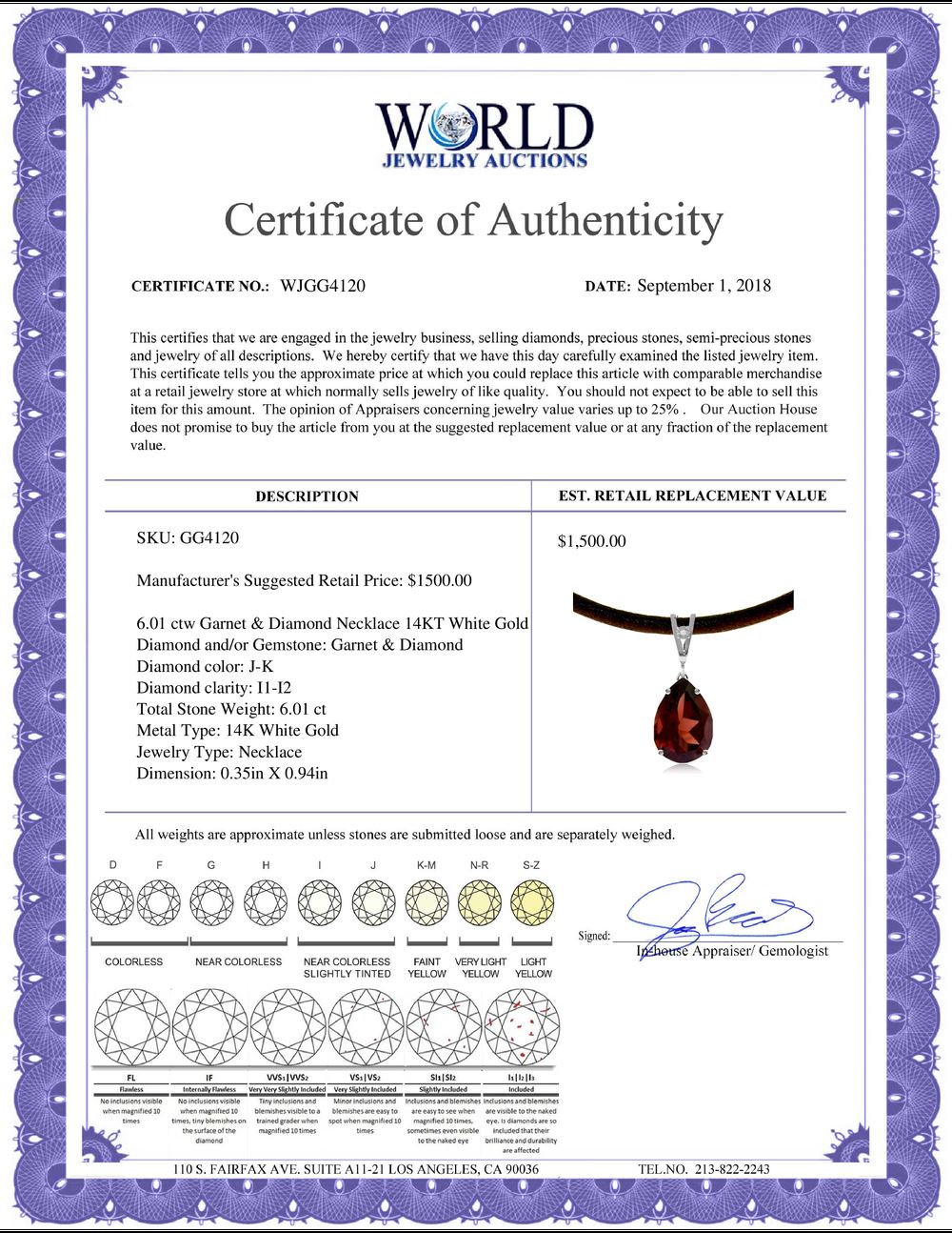 REF-49P2H - SKU: GG4120 ---- Genuine 6.01 ctw Garnet & Diamond Necklace 14KT White Gold