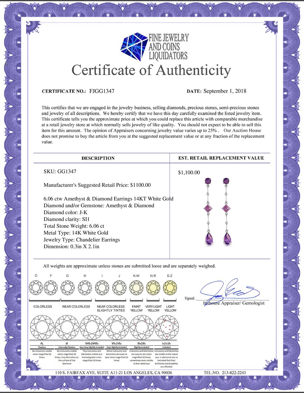 All Gia and EGL Diamonds are subject to availability due to consignors’ terms with us.