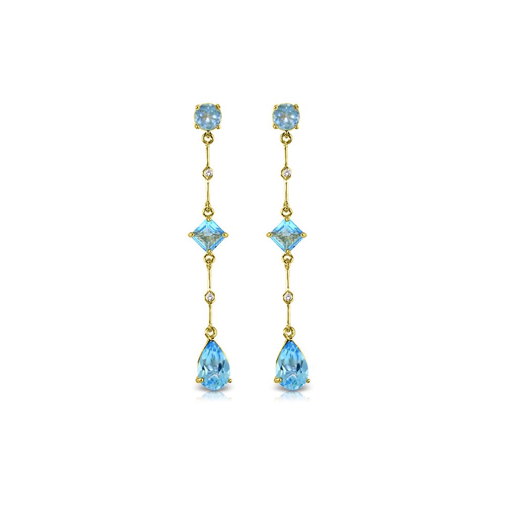 Genuine 14K Yellow Gold 6.06 ctw Blue Topaz & Diamond Earrings