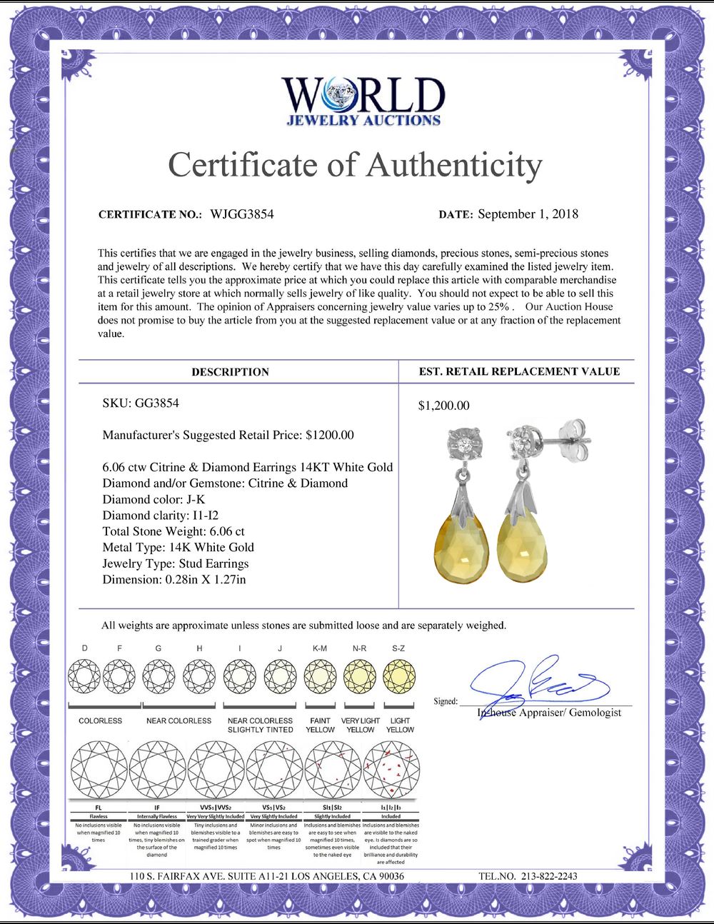REF-37X4M - SKU: GG3854 ---- Genuine 6.06 ctw Citrine & Diamond Earrings 14KT Rose Gold