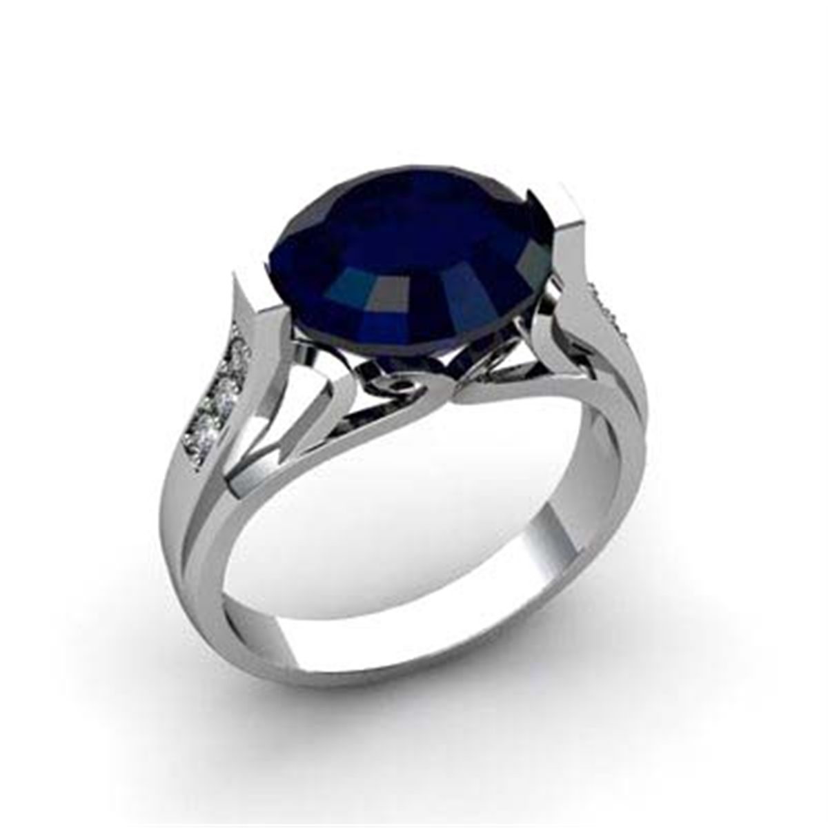 Total CTW: 6.09 ; Mainstone: Sapphire ; Metal Purity: 10kt ; Metal: White or Yellow Gold 6.2 ; Diamond Count 1: 6 Round Cut ; Diamond CTW 1: 0.09 ; Diamond Clarity: SI-I ; Diamond Color: G-H ; Gem Count 1: 1 Oval Cut ; Color: Dark Blue ; Clarity/Rating: AA-AAA ; MSRP: $1632