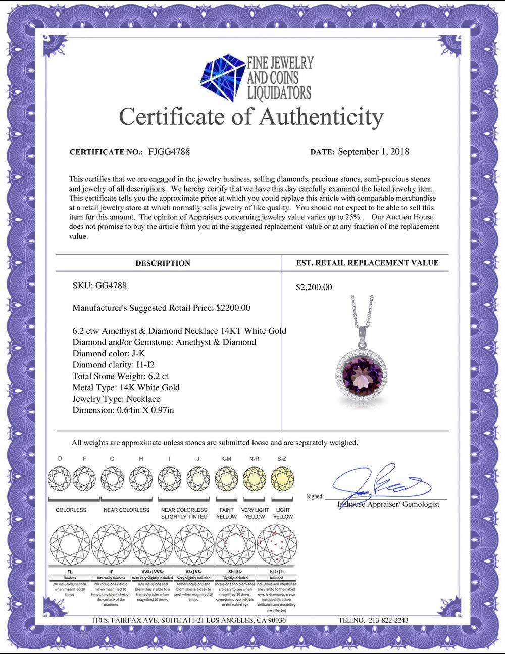 REF-70Z6N - SKU: GG4788 ---- Genuine 6.2 ctw Amethyst & Diamond Necklace 14KT White Gold
