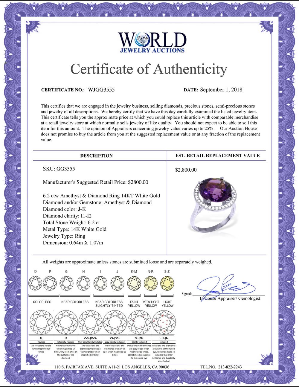All Gia and EGL Diamonds are subject to availability due to consignors’ terms with us.