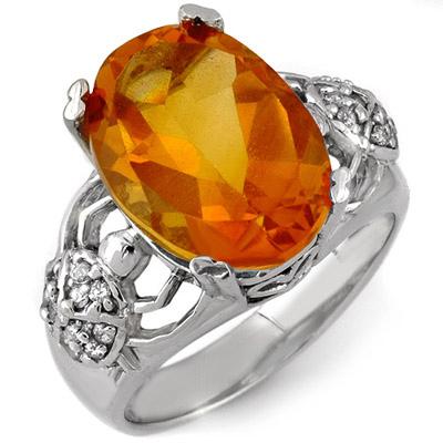 Diamond: 22 Round cut @ 0.20 ctw---- Clarity: SI-I---- Color: H-K----Gemstone: Natural Citrine----Gemstone color: Orange----Gemstone quality: Good-to-Very Good----Gemstone Cut & Weight: 1 Oval cut @ 6.0 ctw----Metal Purity & Color : 10K Gold-White----Gold weight: 6.85 grams----Ring size (US): 6.75----Dimension: Approx. 9/16 x 3/4----Consignor: World Jewelry Outlet----Delivery: Within 10 business days