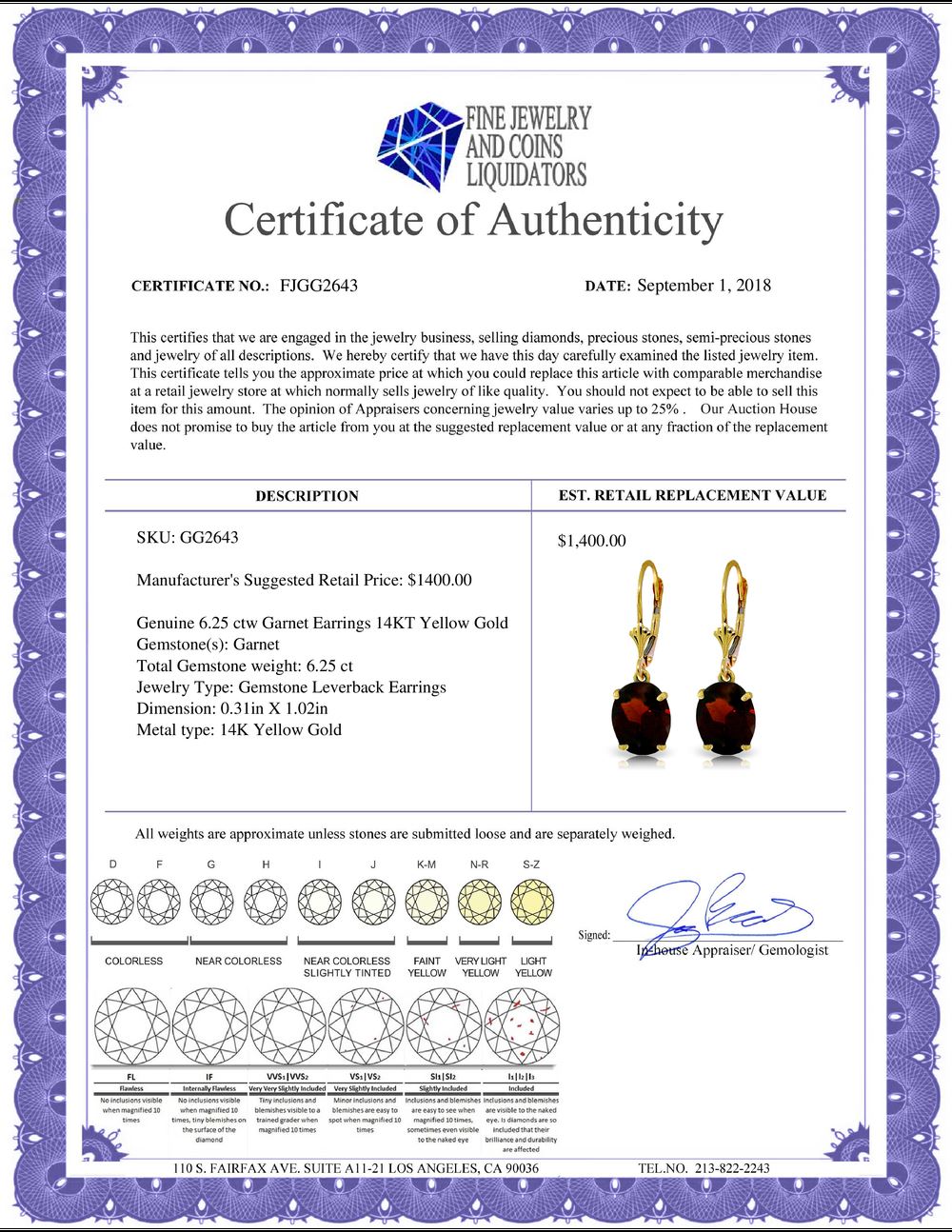 REF-44P3H - SKU: GG2643 ---- Genuine 6.25 ctw Garnet Earrings 14KT Yellow Gold
