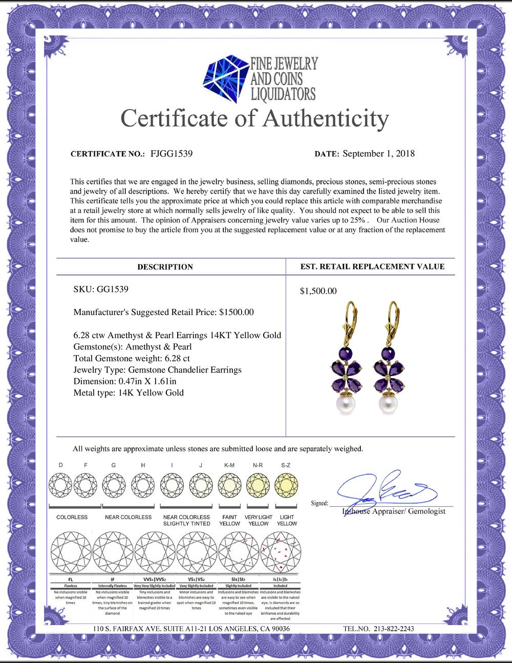 REF-49A8K - SKU: GG1539 ---- Genuine 6.28 ctw Amethyst & Pearl Earrings 14KT Yellow Gold