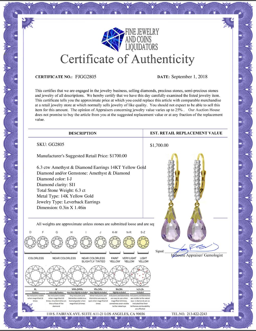 All Gia and EGL Diamonds are subject to availability due to consignors’ terms with us.