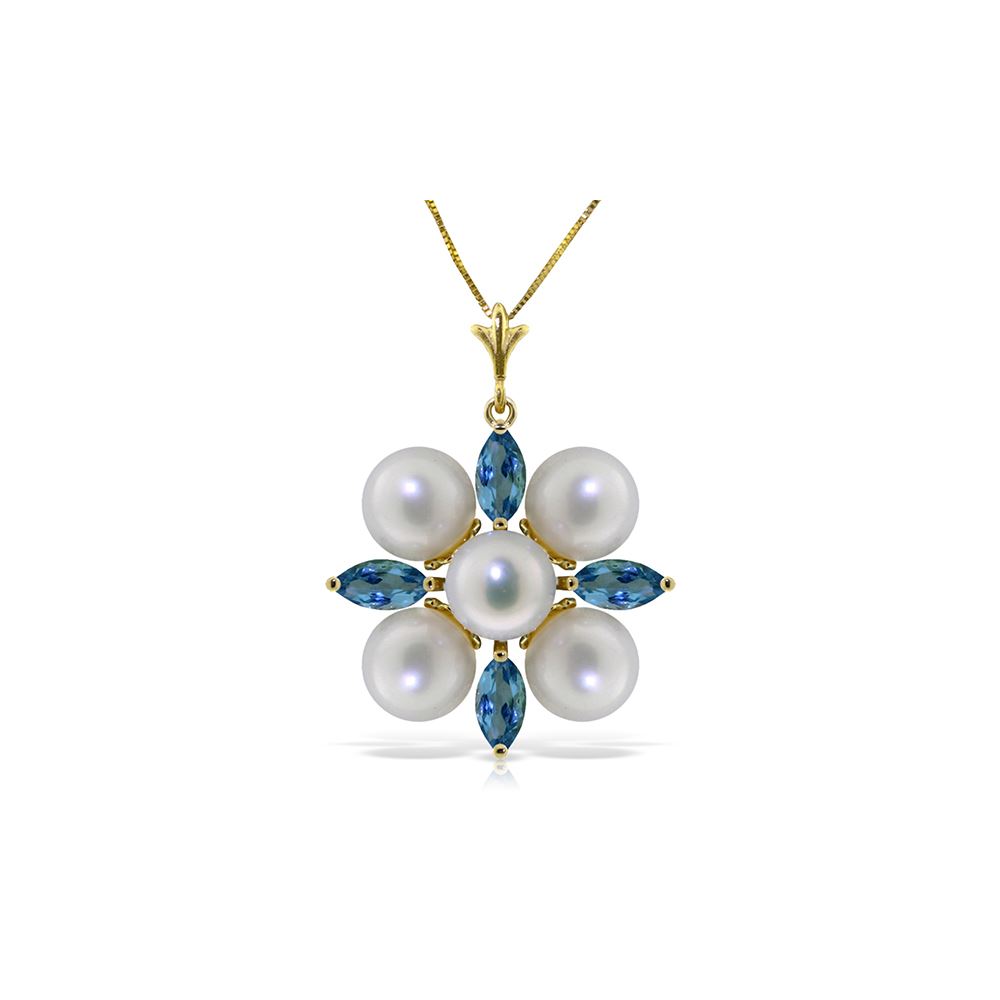 Genuine 14K Yellow Gold 6.3 ctw Blue Topaz & Pearl Necklace