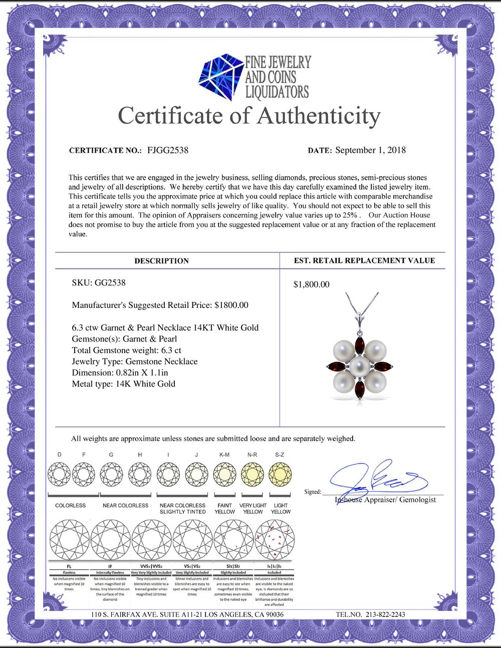 REF-59F2Z - SKU: GG2538 ---- Genuine 6.3 ctw Garnet & Pearl Necklace 14KT Rose Gold