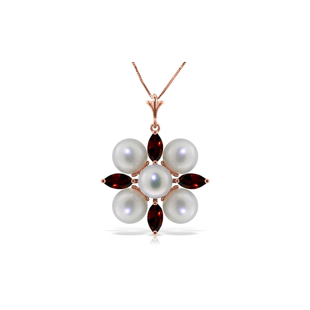 Genuine 14K Rose Gold 6.3 ctw Garnet & Pearl Necklace