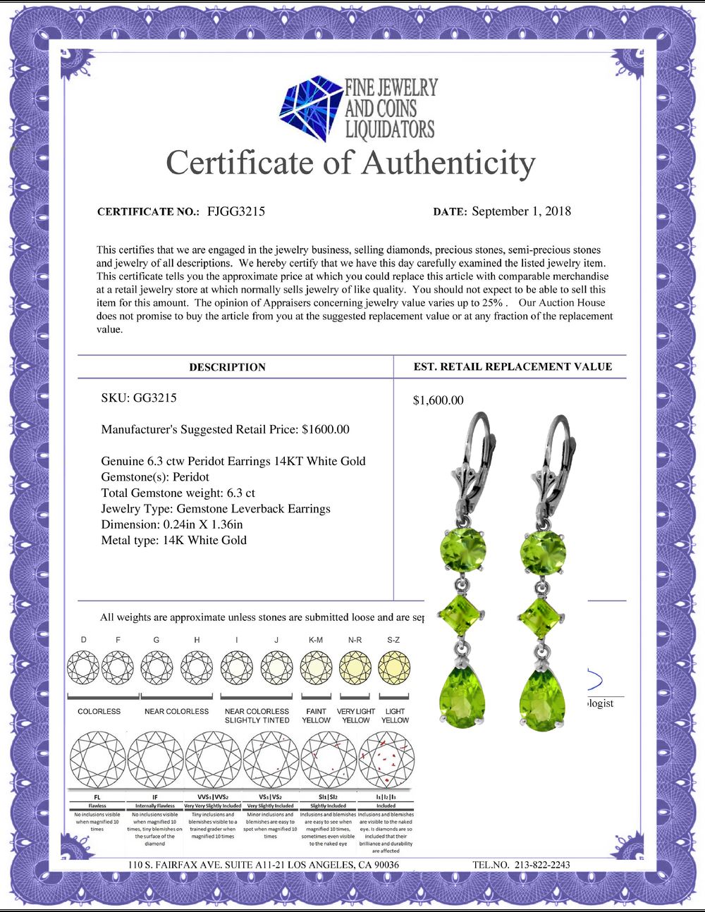 REF-52A2K - SKU: GG3215 ---- Genuine 6.3 ctw Peridot Earrings 14KT Rose Gold