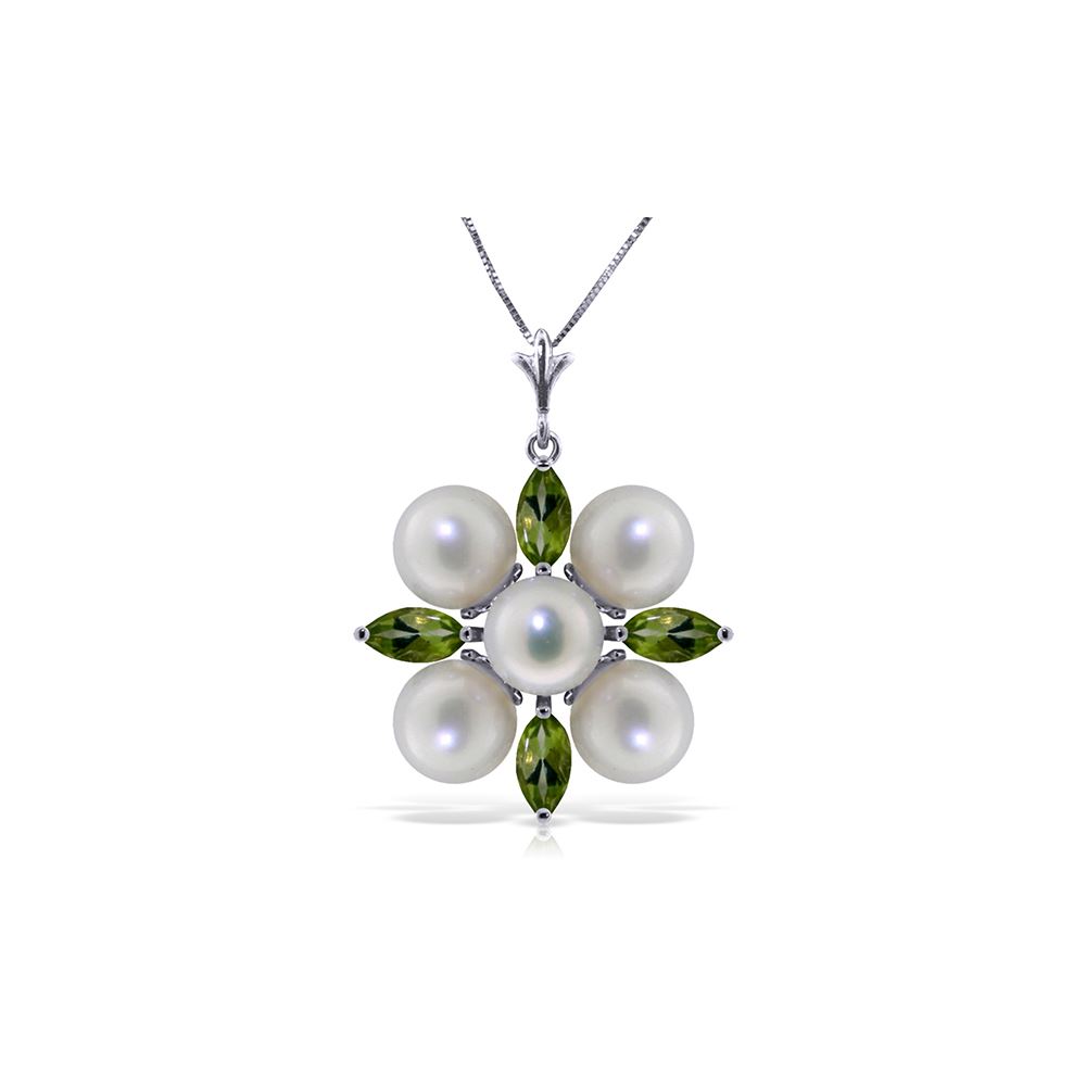 Genuine 14K White Gold 6.3 ctw Peridot & Pearl Necklace