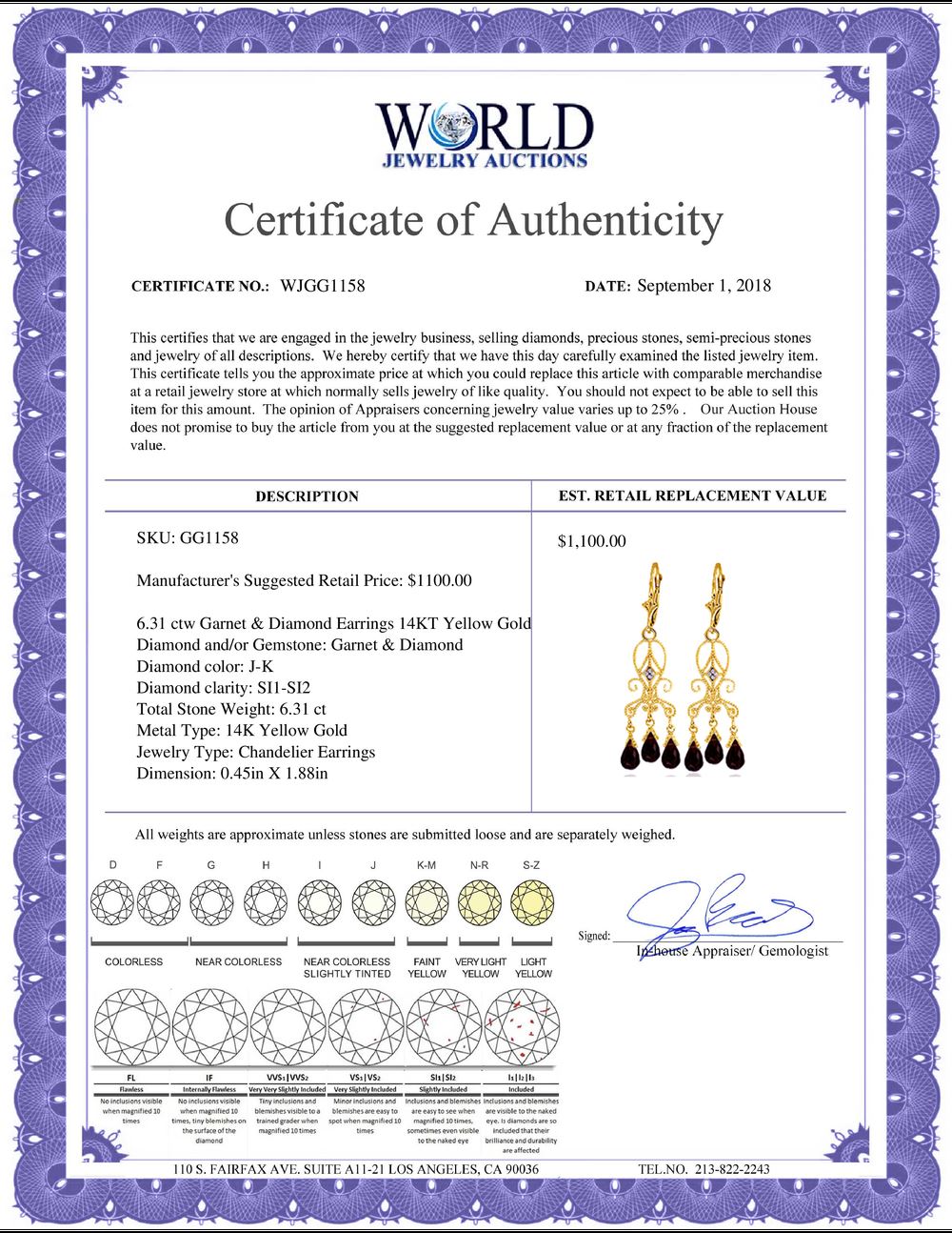 REF-34M6T - SKU: GG1158 ---- Genuine 6.31 ctw Garnet & Diamond Earrings 14KT Yellow Gold