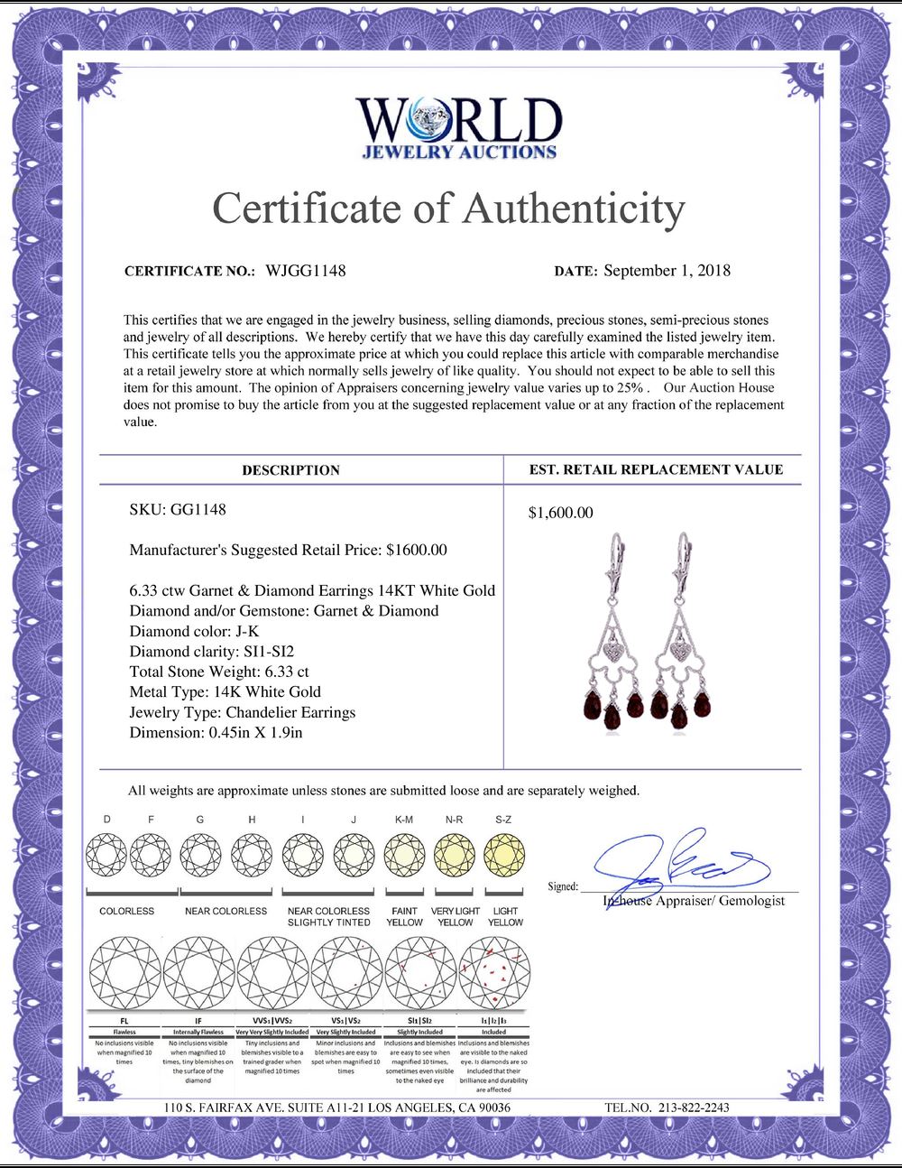 REF-52T3A - SKU: GG1148 ---- Genuine 6.33 ctw Garnet & Diamond Earrings 14KT Rose Gold