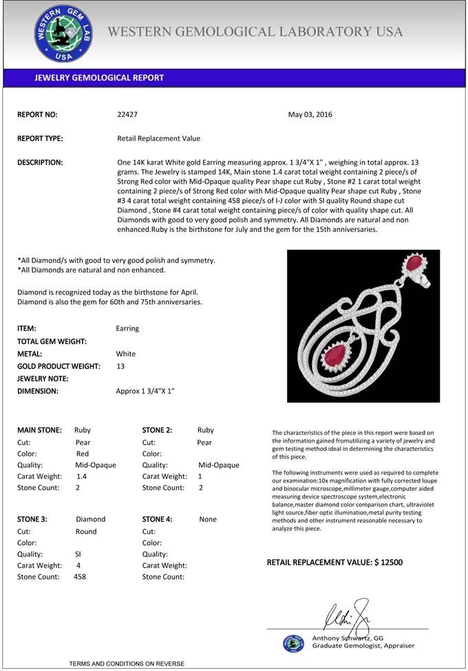 total approx. 13 grams. The Jewelry is stamped 14K, Main stone 1.4 carat total weight containing 2 piece/s of Strong Red color with