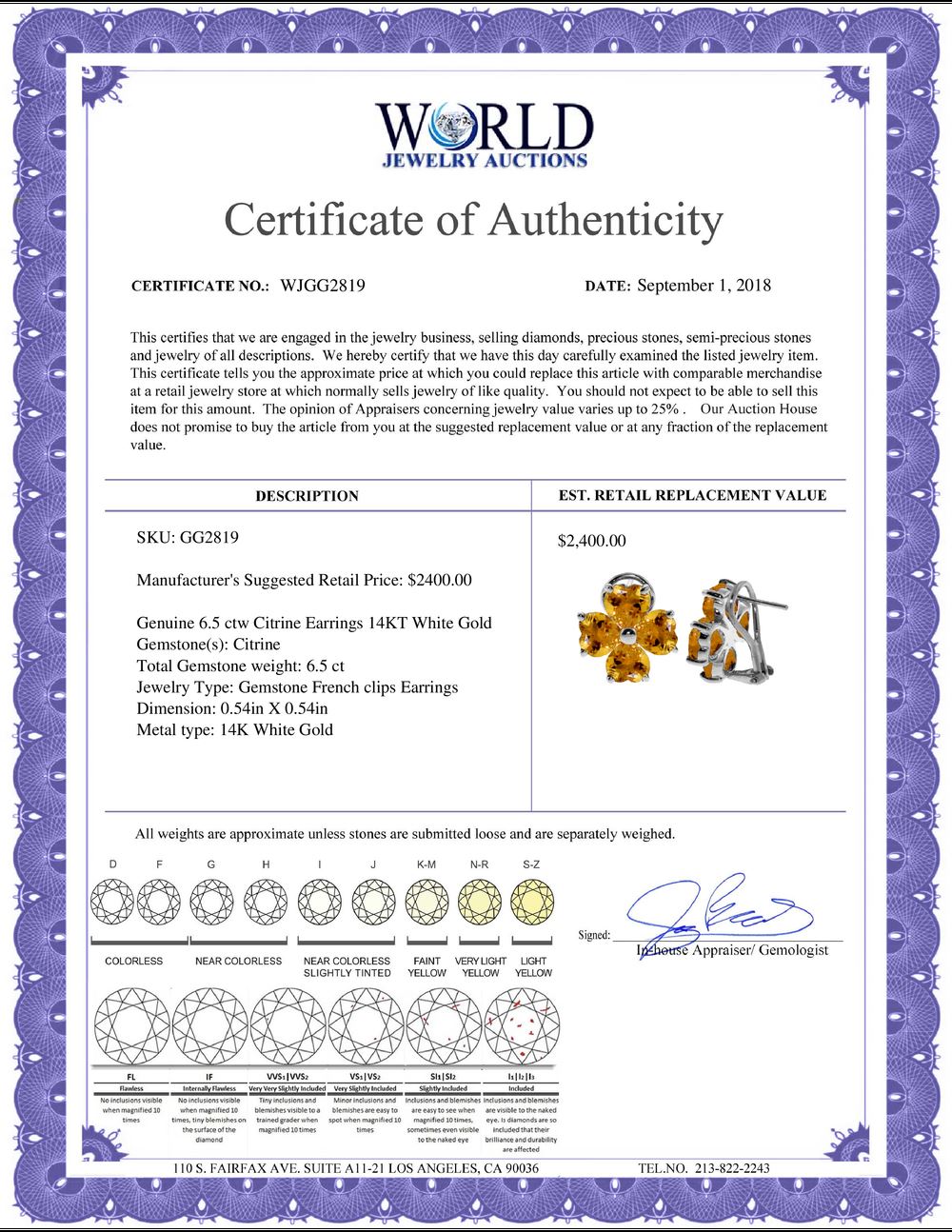 WORLD JEWELRY AUCTION believes to the best of its knowledge that the information presented in any listing has come from reliable sources. Such information is presented solely for the convenience of the Purchaser. WJA makes no warranties of any kind related to the information presented in any listing. WJA further makes no warranties, either express or implied, relating to the value, marketability or condition of the lot described in any listing. Prospective bidders should investigate a lot thoroughly before bidding. By bidding the Bidder acknowledges that Bidder has investigated the lot to his or her satisfaction, or, that Bidder has chosen not to do so, and agrees to accept the lot being bid on with no objections after the sale closes. If you are uncertain please contact us with your questions prior to bidding. If you are still uncertain after we reply, please refrain from bidding. Photos other graphic material contained in any listing of generic or duplicate lots may be stock presentations and not necessarily of the specific lot.