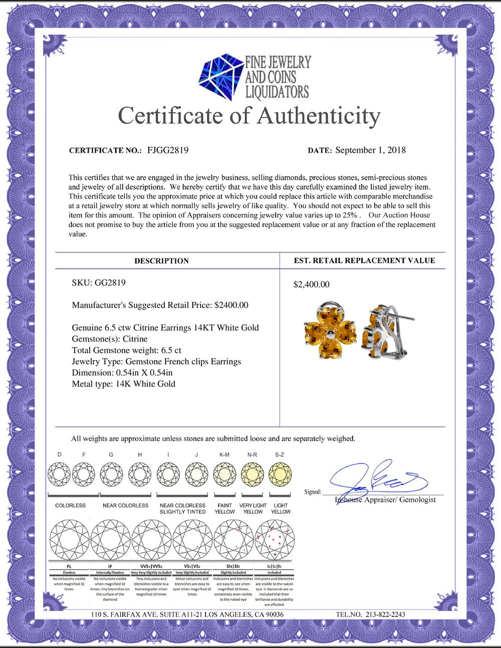 REF-79V7W - SKU: GG2819 ---- Genuine 6.5 ctw Citrine Earrings 14KT Rose Gold