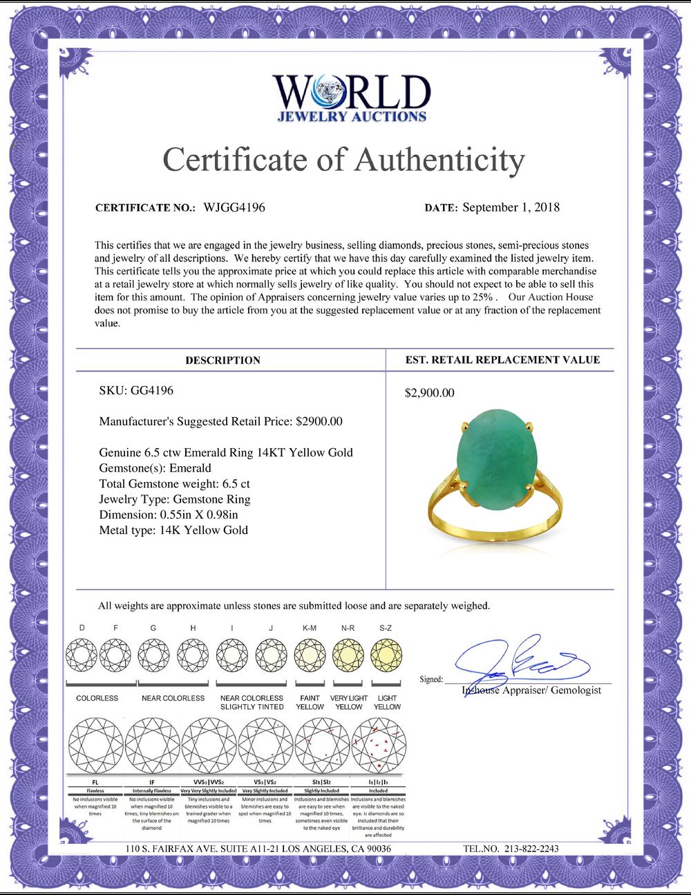 REF-94W4Y - SKU: GG4196 ---- Genuine 6.5 ctw Emerald Ring 14KT Yellow Gold