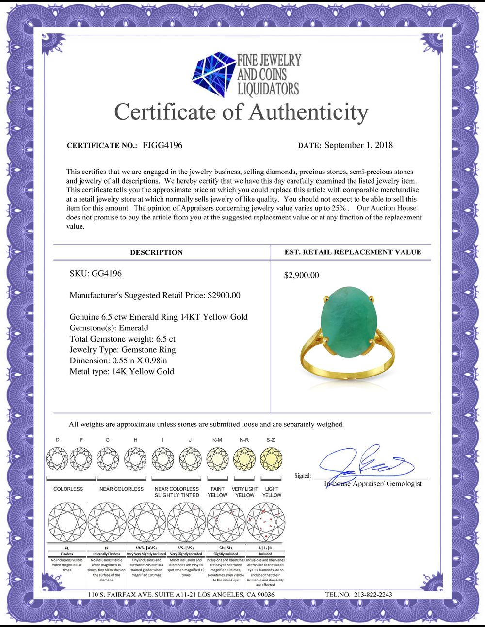 REF-94W4Y - SKU: GG4196 ---- Genuine 6.5 ctw Emerald Ring 14KT Yellow Gold