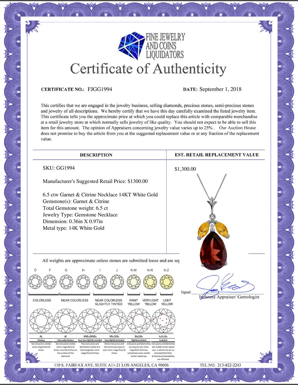 REF-42A2K - SKU: GG1994 ---- Genuine 6.5 ctw Garnet & Citrine Necklace 14KT White Gold