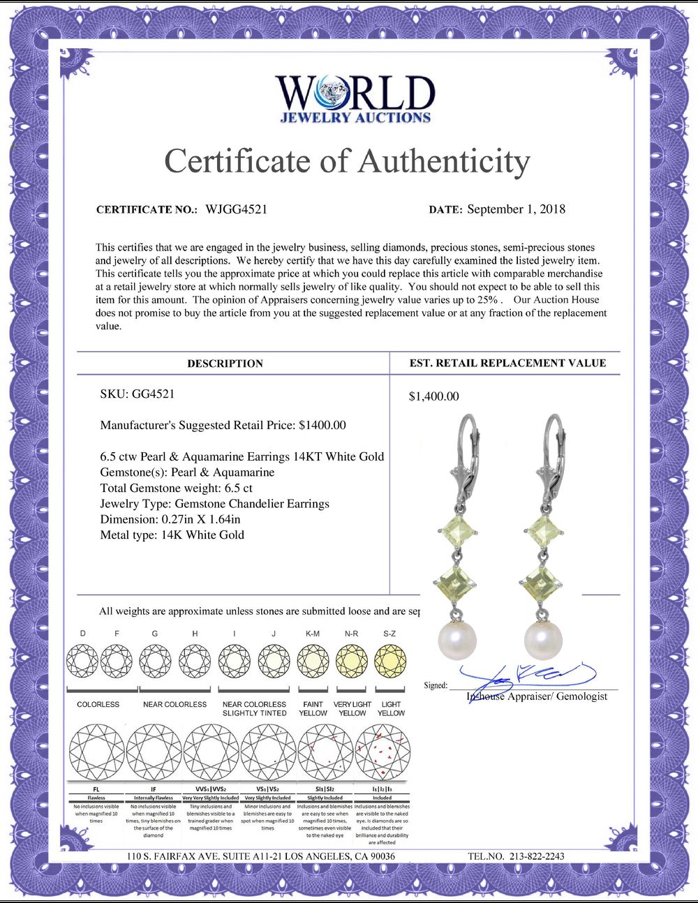 REF-45A8K - SKU: GG4521 ---- Genuine 6.5 ctw Pearl & Aquamarine Earrings 14KT Rose Gold